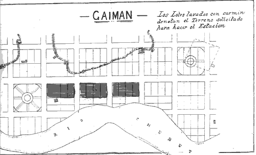 V.E. accedio bondadosamente a ese pedido disponiendo que en el pueblo de Gaiman se reservasen a favor de la empresa del Ferro Carril Central Chubut las manzanas Nos 3, 4, 5 y 6 pertenecientes al fisco.