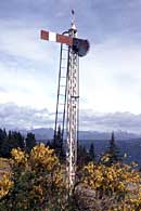 Like most railways in Argentina the FCE used British style semaphore signals. In the smaller stations these would be worked from an open ground frame. The latter were definitely not of British style. The picture far left illustrates a four lever frame and the extreme movement of the levers - almost down to ground level - can be seen. The weights part-way down the levers allow for wire length compensation in varying temperatures and also make it easier to pull a stiff wire. The first movement of the lever initially raises the weight a little rather than jerking the whole length of wire; by the time the wire actually gives, the lever is moving well; and the weight's movement back down the lever puts extra tension on the wire.