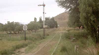 Empalme Km 648 (from Viedma) where the economic gauge La Trochita peels away towards Esquel. The very British style junction signal was taken out of use in the mid 1990s but nevertheless the remaining arm still sports its out of use cross.