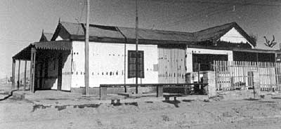 The smaller stations were by no means as solidly built as the main terminus. Below is the building at Km. 5, though taken after the tracks had been lifted.