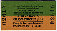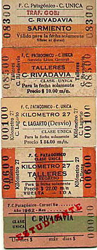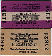 The one immediately above is an employee's 'privilege' ticket, for a return journey between Talleres (The workshops) and Kilometre 27 or 31.