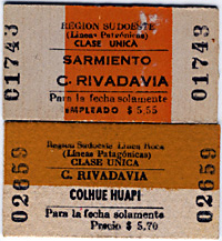 The ticket overprinted 'Estudiante' is a monthly season. Note the year – 1962. By then the railway was under the supervision of the FC General Roca but unlike the next tickets this one has not been labelled as such.