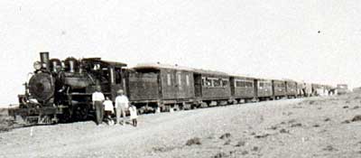 An excursion train on the regauged FC Central del Chubut, probably on the Rawson branch. The locomotive is one of the 25 Baldwin 2-8-2s purchased in 1922.
