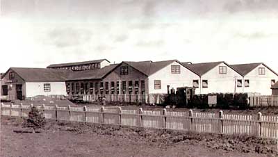 Two lines at Río Grande Background Two huge new estancias - Primera Argentina and Segunda Argentina - were laid out, south and north of the Rio Grande respectively, westward from the town of Rio Grande all the way to the Chilean border. On the death of the founder of the company these two estates were renamed after José Menendez and his wife Maria Behety. The new estancias, and older ones such as the historic Est. Viamonte to the south, obviously needed a slaughterhouse and freezer plant. A co-operative, 'the Compañia Frigorifica Argentina de Tierra del Fuego, embarked on the construction of a frigorifico on the south side of the Rio Grande near the sea, just opposite the town of the same name. The frigorifico, in 1940 sold to CAP (Corporación Argentina de Productores de Carnes) is now empty and derelict. The view below shows it as seen from the opposite side of the river. Its jetty or muelle is visible on the right.