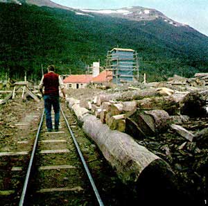 Many of the estancias built their own sawmills, often powered by a portable steam engine. Mrs. Natalie Goodall of Estancia Harberton confirms in her guidebook to Tierra del Fuego (3) that the nearby Estancia Remolino on the Beagle Channel built a railway line from its sawmill northwards for two or three miles into the Cañadon Remolino.